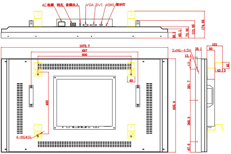 HDMI/DVI/VGA/AV/RS232/ 电源接口 |